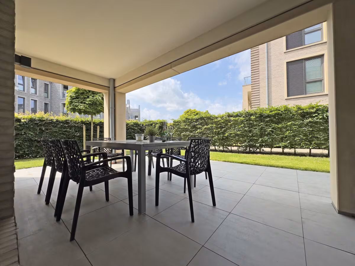 Terrasse & Garten: Großer Garten, Terrasse mit Gartenmöbeln, Sonnenliegen, Sonnenschutz, Holzkohlegrill