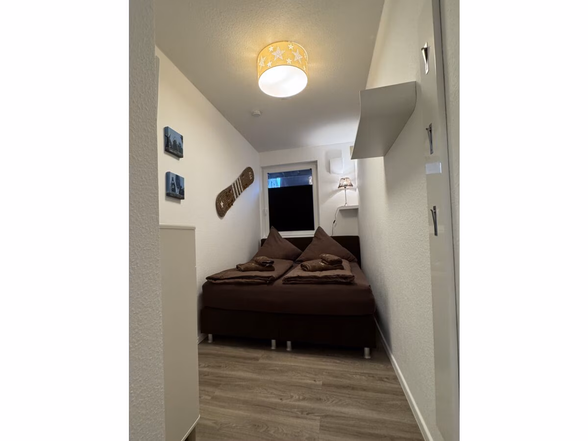 • Schlafzimmer 1: Boxspringbett (180), Kleiderschrank, TV mit DVD-Player, Steckdosensicherung, Verdunkelung