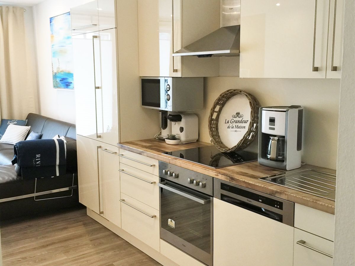 • Küche: Moderne Einbauküche, 4-Platten-Ceranfeld, Backofen, Mikrowelle, Geschirrspüler, Kühlschrank mit Gefrierfach, Kaffeemaschine, Wasserkocher, Toaster, Mixer, Kinderbesteck & -geschirr, Fußbodenheizung